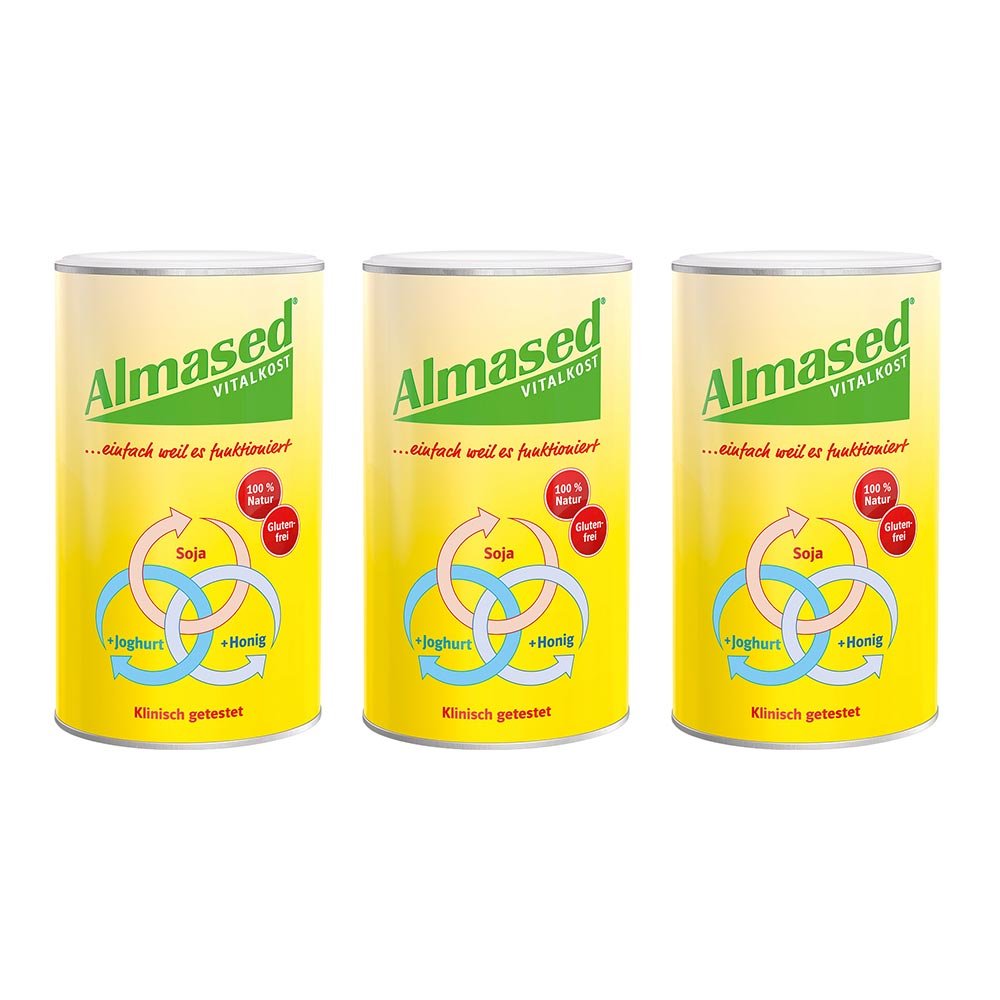 - Vorteils-Set besteht aus 3x Almased Vital-pflanzen-eiweisskost (500 g) PZN: 03321472