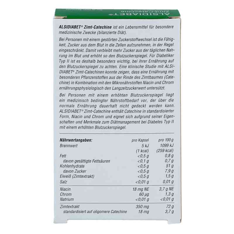 Verzehrsempfehlung von Alsidiabet Zimt Catechine für Diab.Typ Ii Kapseln (Packungsgröße: 30 stk):