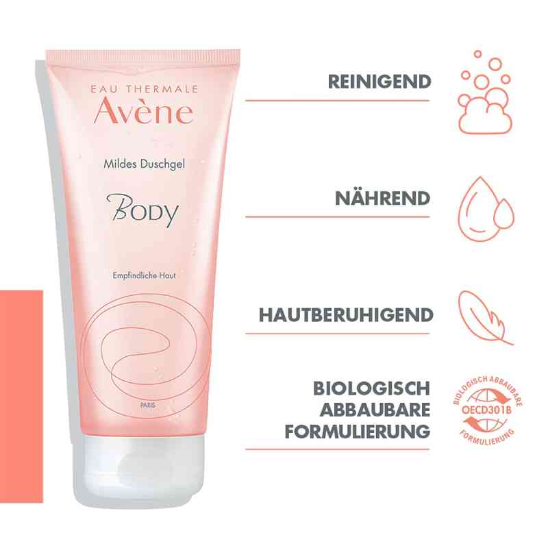 Hypoallergener Duftstoff, biologisch abbaubare Formulierung (laut Standard OECD 301B).Avene Body mildes Duschgel (Packungsgröße: 200 ml) können in Ihrer Versandapotheke www.apodiscounter.de erworben werden.