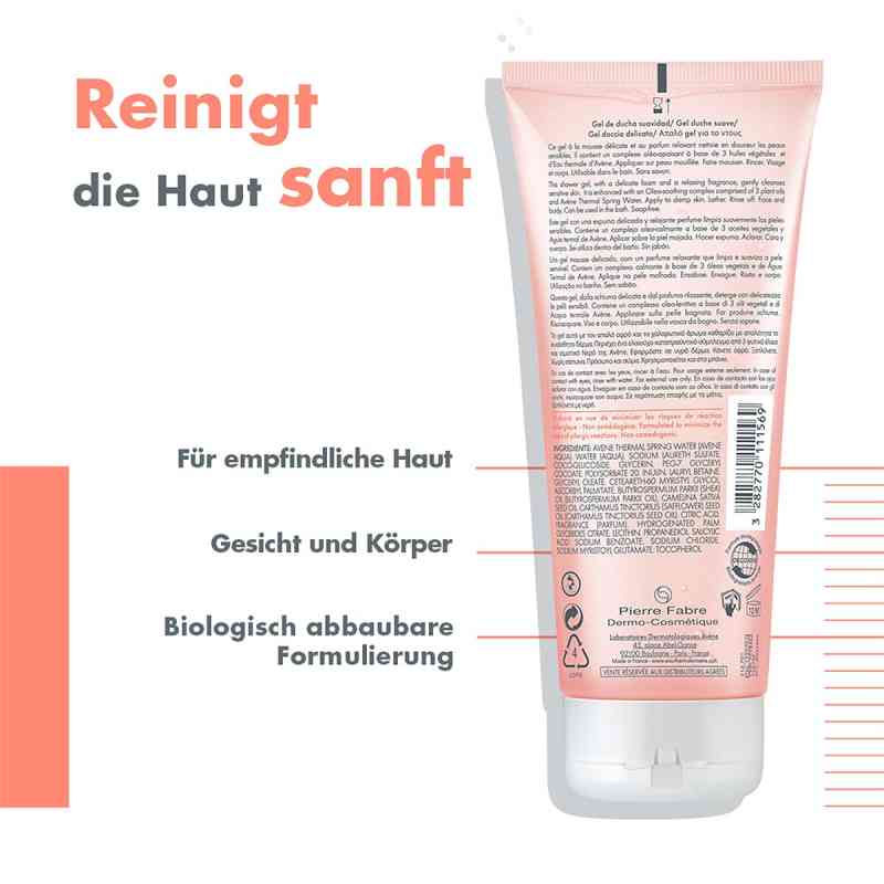 Avene Body mildes Duschgel (Packungsgröße: 200 ml) für die tägliche Reinigung der Haut anwenden.