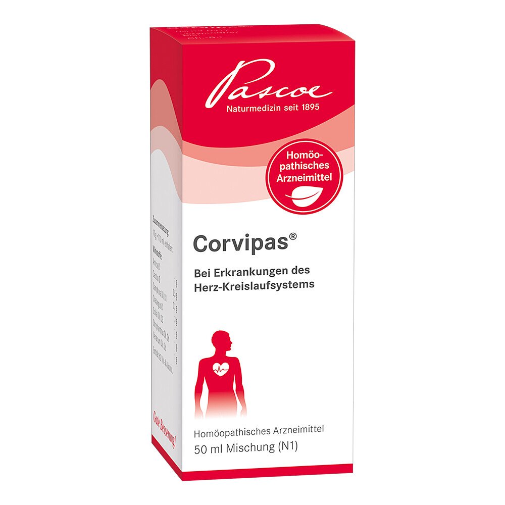 Corvipas Tropfen (Packungsgröße: 50 ml) sind apothekenpflichtig und können in Ihrer Versandapotheke www.apodiscounter.de erworben werden.