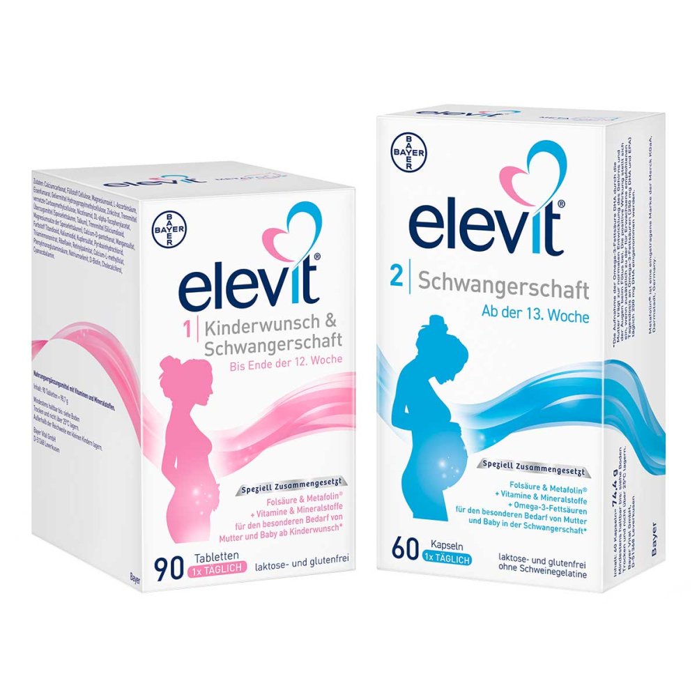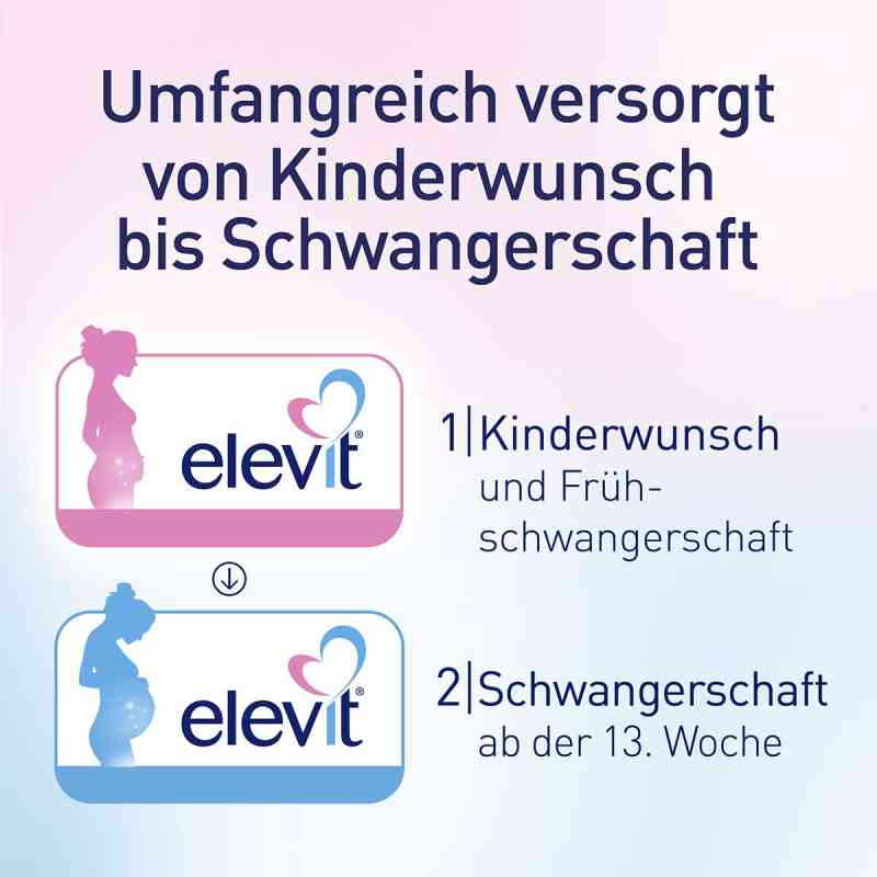 - Elevit 1: Ab Kinderwunsch bis zum Ende der 12 Schwangerschaftswoche