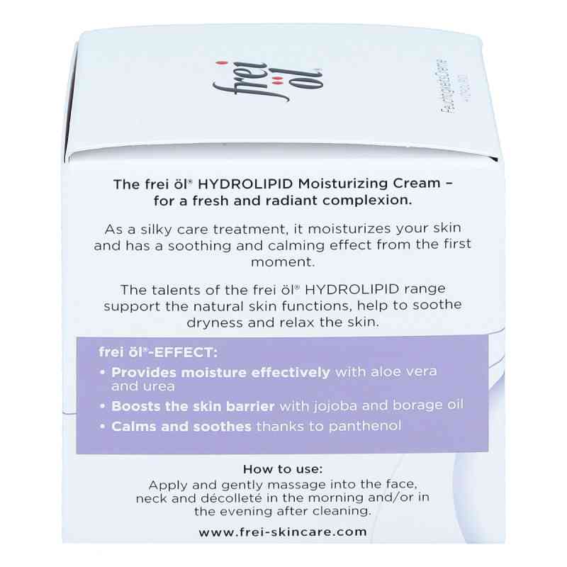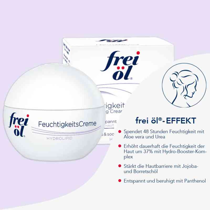 Die Frei öl Hydrolipid Feuchtigkeitscreme (Packungsgröße: 50 ml) unterstützt die natürlichen Hautfunktionen und spendet vom ersten Augenblick an Entspannung und wohltuende Pflege.