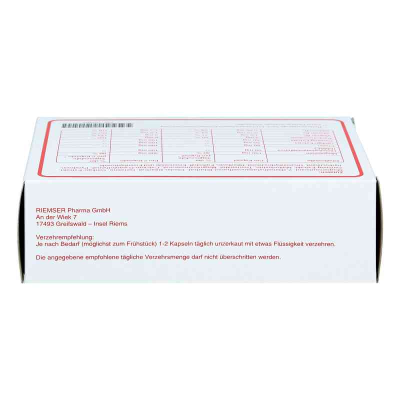 Je nach Bedarf (möglichst zum Frühstück) 1-2 Kapseln täglich unzerkaut mit etwas Flüssigkeit verzehren. Die angegebene empfohlene Verzehrsmenge darf nicht überschritten werden. Nicht zum Verzehr für Kinder und Jugendliche unter 16 Jahren geeignet.