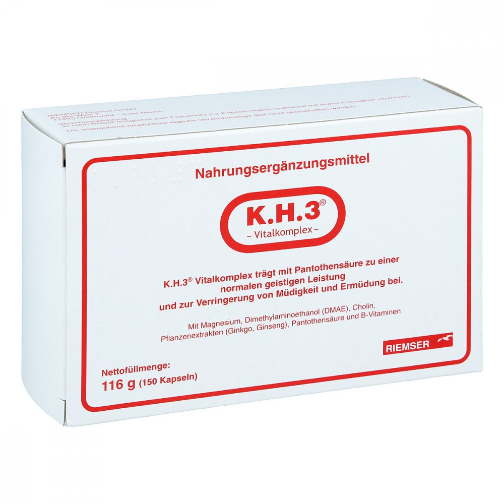 K.h.3 Vitalkomplex Kapseln (Packungsgröße: 150 stk) können in Ihrer Versandapotheke www.apodiscounter.de erworben werden.