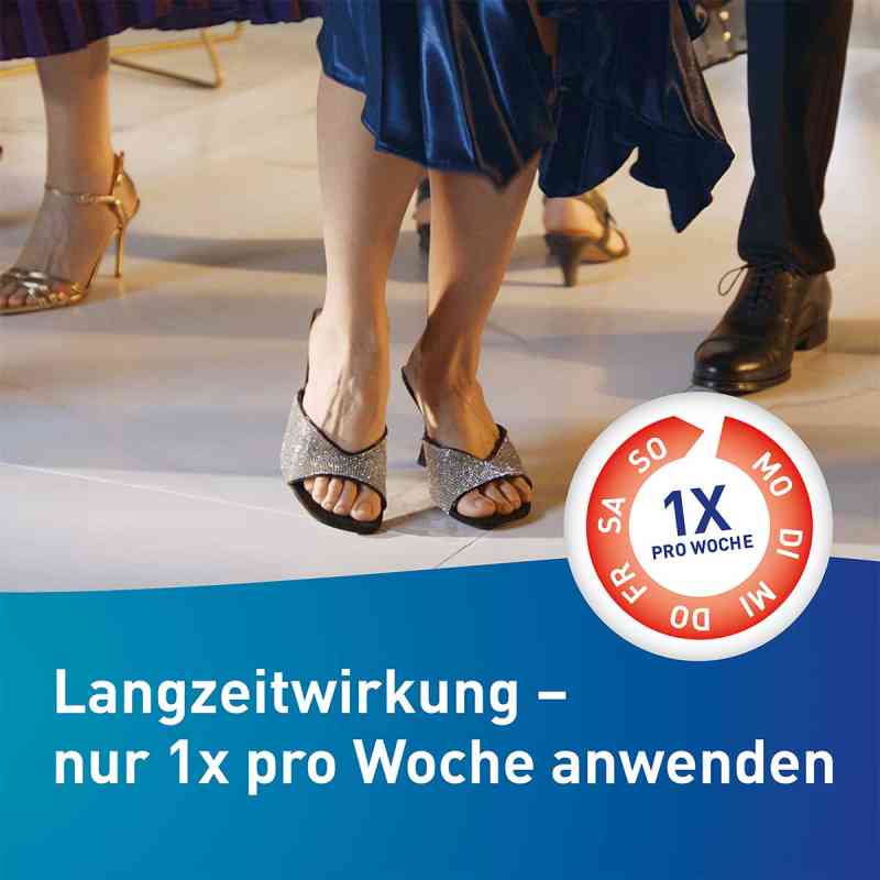Loceryl gegen Nagelpilz (Packungsgröße: 3 ml) wird einmal wöchentlich aufgetragen. Loceryl gegen Nagelpilz (Packungsgröße: 3 ml) bildet einen schützenden Film auf dem Nagel und gibt kontinuierlich Wirkstoff an den Nagel ab. Loceryl gegen Nagelpilz (Packungsgröße: 3 ml) kann auf Fuß- und Zehennägeln aufgetragen werden.