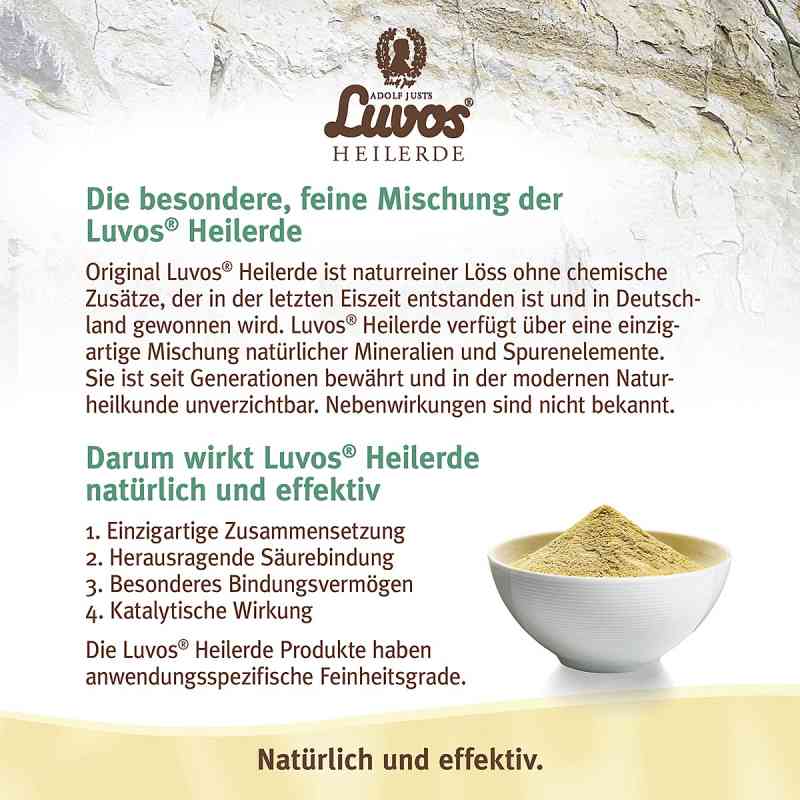 Luvos-Heilerde (Packungsgröße: 60 stk) ist ein Naturprodukt ohne chemische oder sonstige Zusätze. Der feine Löß hat eine spezifische Oberfläche, die in Luvos-Heilerde (Packungsgröße: 60 stk) für eine optimale Bindung von Substanzen wie Schadstoffen sorgt.