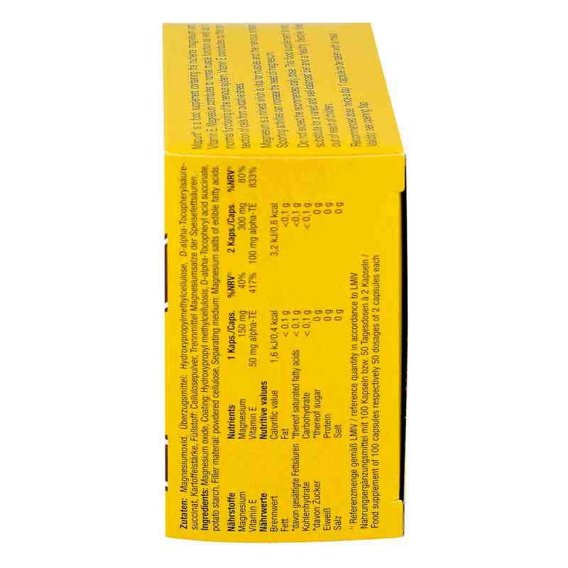 mg Magnesium/Kapsel, 100 mg alpha-TE (Vitamin E)/Kapsel.