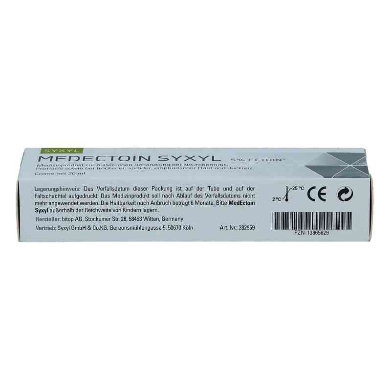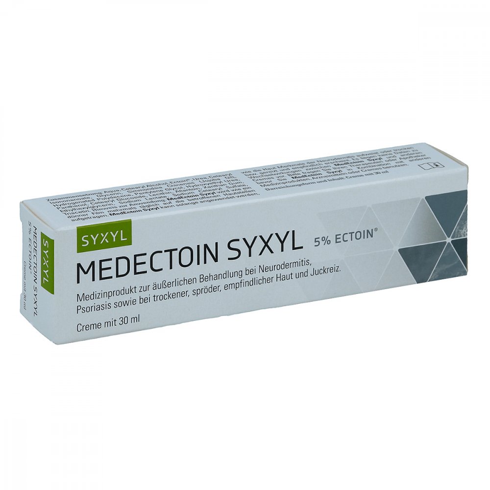 Ectoin ist der Hauptwirkstoff in Medectoin Syxyl Creme (Packungsgröße: 30 ml). Ectoin ® ist ein natürlich schützender Wirkstoff, der auch für die Oberflächen der menschlichen Hautzellen, den Zellmembranen, eine schützende und stabilisierende Wirkung entfalten kann. Sie beruht auf zwei wichtigen Wirkmechanismen, die besonders bei trockener und geschädigter Haut, wie es z. B. bei Neurodermitis und Psoriasis der Fall ist, zum Tragen kommen. Zum einen verhindert Ectoin, dass zuviel Feuchtigkeit aus den Hautzellen austreten kann und somit verloren geht. Zum anderen schützt Ectoin ® die Hautzellen vor schädigenden Reizen und stabilisiert die belastete Haut, wie sie z. B. bei Neurodermitis und Psoriasis vorliegt. Medectoin Syxyl Creme (Packungsgröße: 30 ml) stärkt und schützt die Barrierefunktion der Haut durch eine natürliche Filmbildung, vermindert spürbar den Feuchtigkeitsverlust und lindert so die typischen Beschwerden wie Juckreiz und Schuppenbildung.