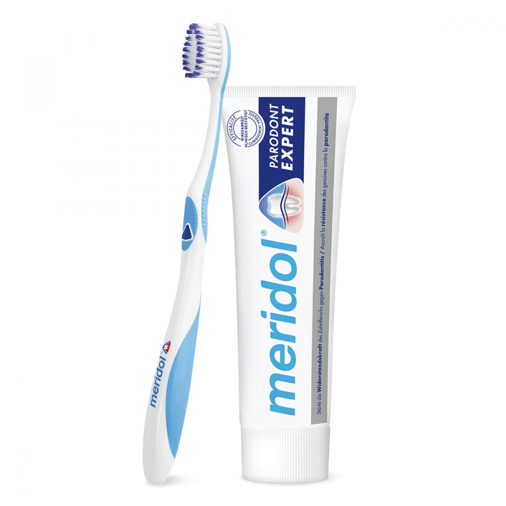 Kombinieren Sie meridol® PARODONT EXPERT Zahnpasta mit klinisch geprüfter Wirkformel und meridol® PARODONT EXPERT Zahnbürste für eine optimale Zahnpflege.