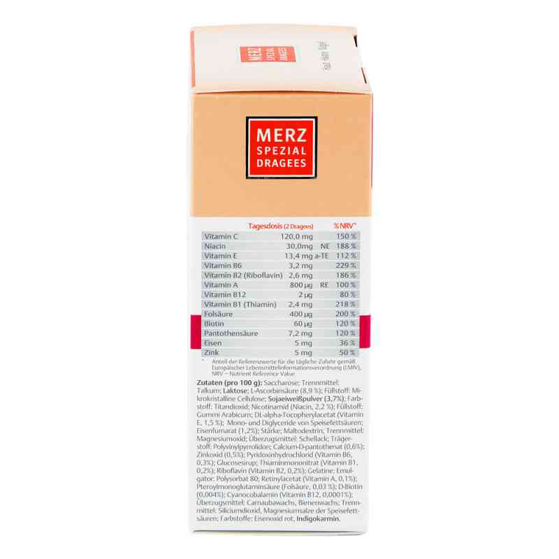 Zutaten von Merz Spezial Dragees (Packungsgröße: 120 stk): Saccharose; Lactose; Trennmittel: Talkum; L-Ascorbinsäure