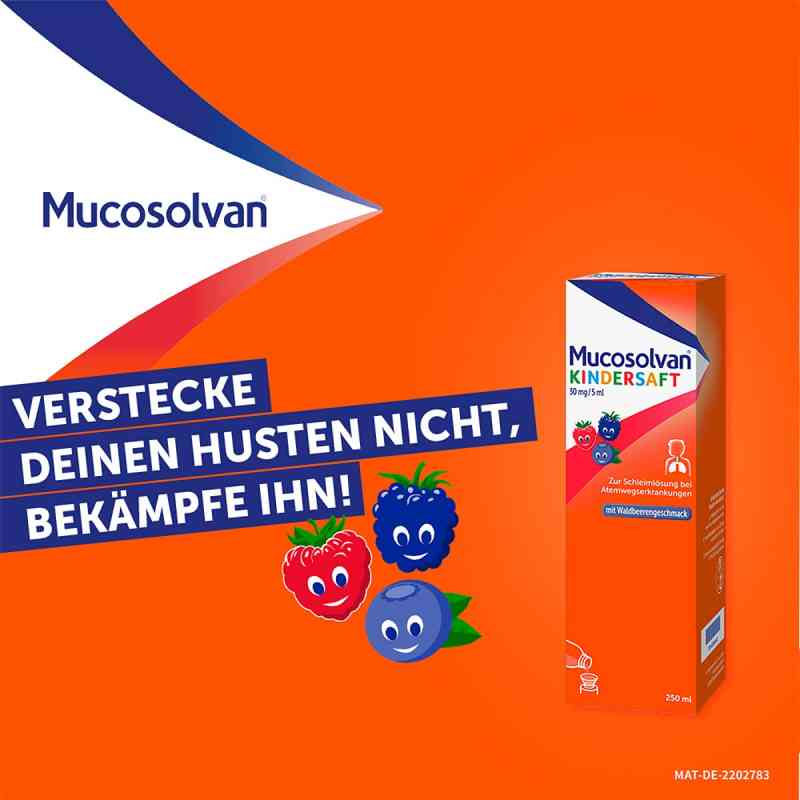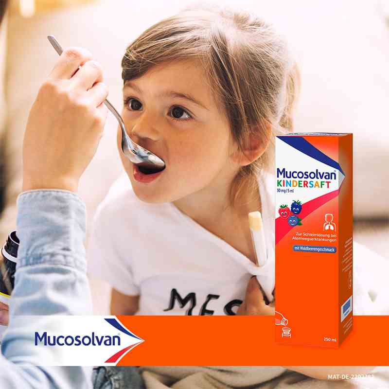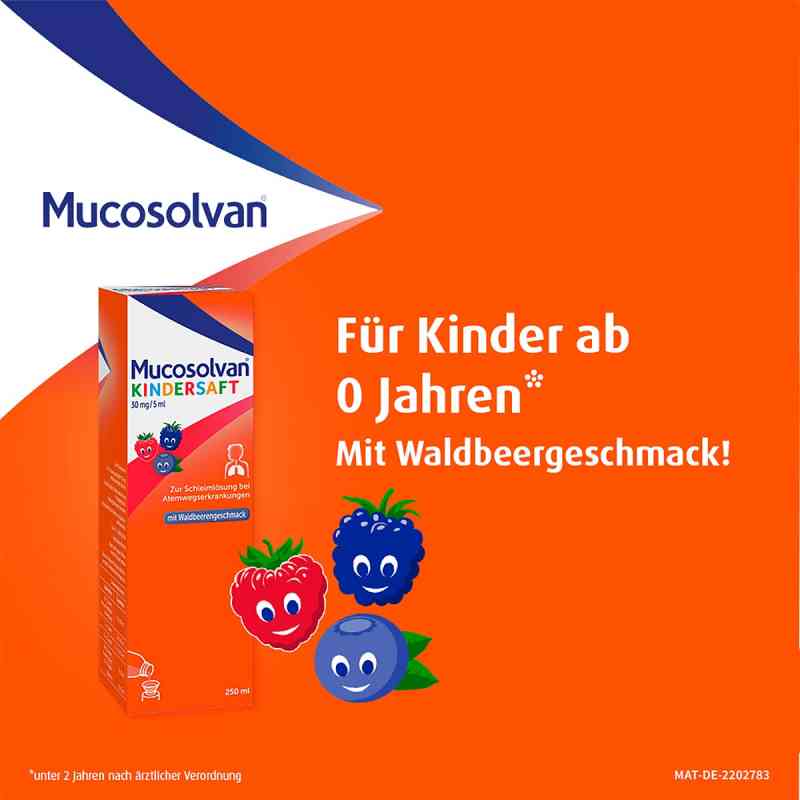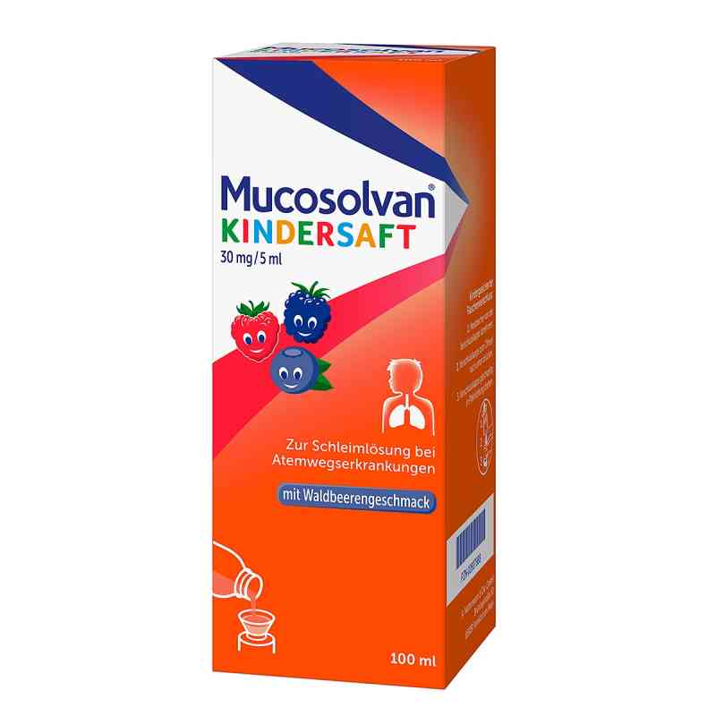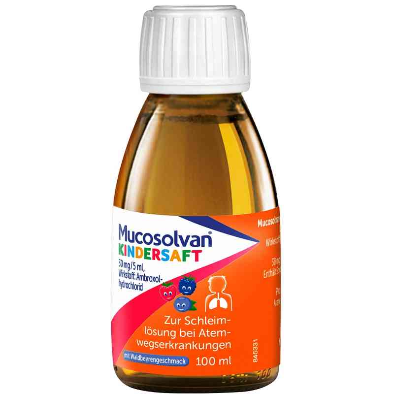 Mucosolvan Kindersaft 30mg/5ml (Packungsgröße: 100 ml) wird zur schleimlösenden Therapie bei akuten und chronischen Erkrankungen der Bronchien und der Lunge, die mit einer Störung von Schleimbildung und – transport einhergehen, angewendet.