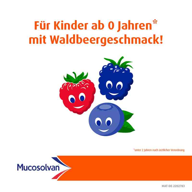 Die zugesetzten Aromastoffe geben dem Mucosolvan Kindersaft 30mg/5ml (Packungsgröße: 100 ml) einen frischen Waldbeergeschmack.