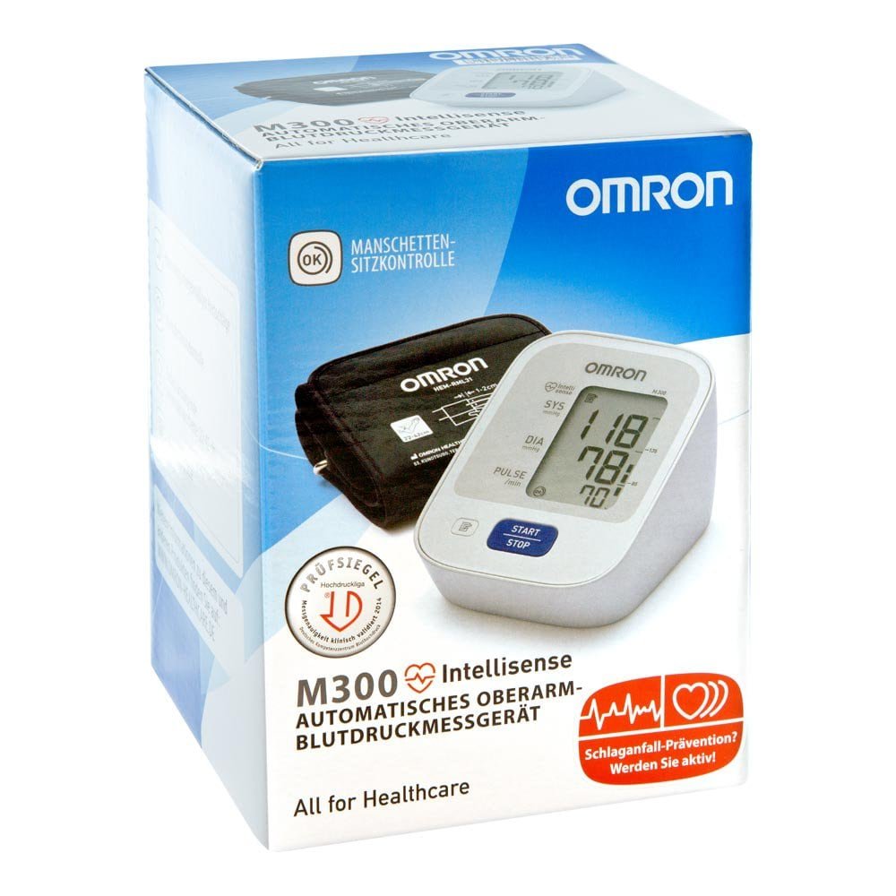 Omron M300 Oberarm Blutdruckmessgerät Hem-7121-d (Packungsgröße: 1 stk) ist ein vollautomatisches Blutdruckmessgerät für den Oberarm. Omron M300 Oberarm Blutdruckmessgerät Hem-7121-d (Packungsgröße: 1 stk) wertet Ihren Blutdruck präzise aus, mit einem Speicher für 30 Messwerte und Erkennung eventueller Herzrhythmusstörungen. Die Bedienung erfolgt ganz einfach über eine einzige Taste. Standardmanschette (22 – 42 cm). Arrhy thmie-Erkennung, Mittelwertanzeige und Blutdruck-Bewertungsskala nach den Blutdruckgrenzwerten der WHO.