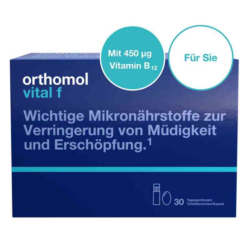 Orthomol Vital F Trinkfläschchen (Packungsgröße: 30 stk) sind ein Nahrungsergänzungsmittel und zur diätetischen Unterstützung für Frauen mit Erschöpfungszuständen, Burn-out oder gehäufter Müdigkeit geeignet.