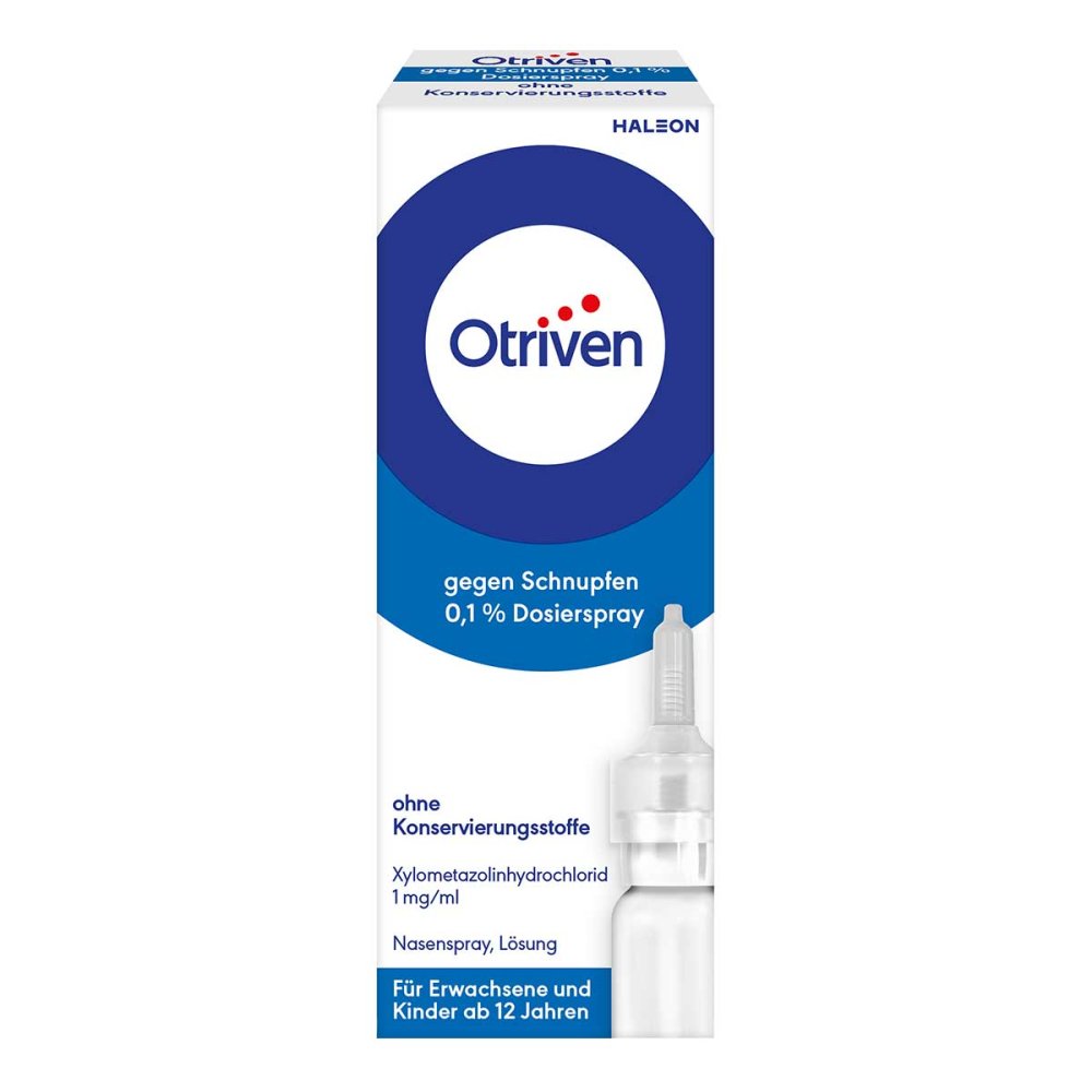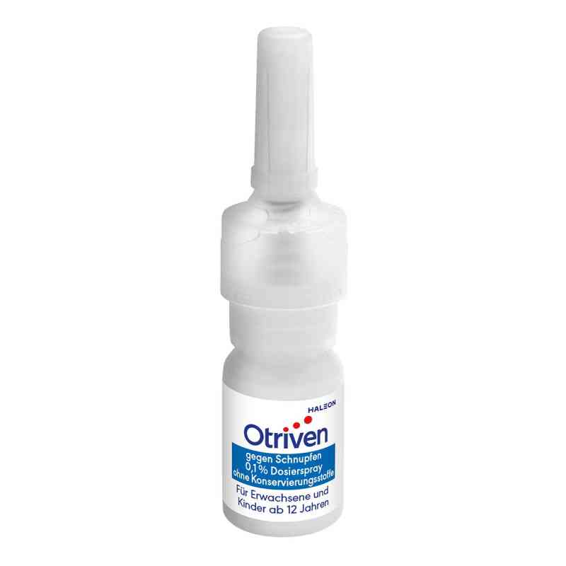 Otriven gegen Schnupfen 0,1 % Nasenspray (Dosierspray) ohne Konservierungsstoffe ist für Erwachsene und Jugendliche über 12 Jahren geeignet. Für Kinder zwischen 2 und 6 Jahren sowie für Säuglinge steht Otriven auch niedriger dosiert zur Verfügung.