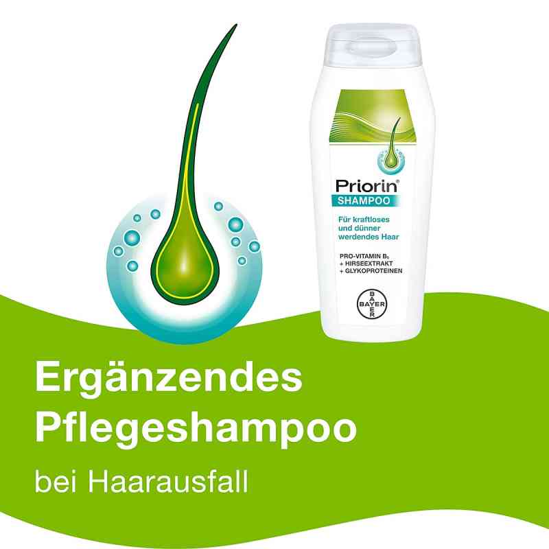 Priorin Shampoo für kraftlos.dünner werdendes Haar (Packungsgröße: 200 ml) enthält die besondere Kombination aus Hirseexrakt, Glykoproteinen und dem Pro-Vitamin B5. Das in Priorin Shampoo für kraftlos.dünner werdendes Haar (Packungsgröße: 200 ml) enthaltene Pro-Vitamin B5 lagert sich am Haar an und bringt langanhaltend Feuchtigkeit in das Haar, zudem gibt es dem Haar Volumen und erhöht seine Widerstandskraft gegen Haarbruch.