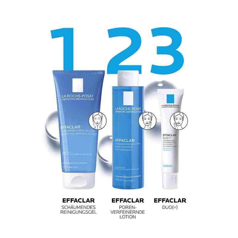 Im pH-Wert auf 5,5 eingestellt wirkt Roche Posay Effaclar porenverfeinernde Lotion (Packungsgröße: 200 ml) ausgesprochen wohltuend und reizlindernd auf die Haut.