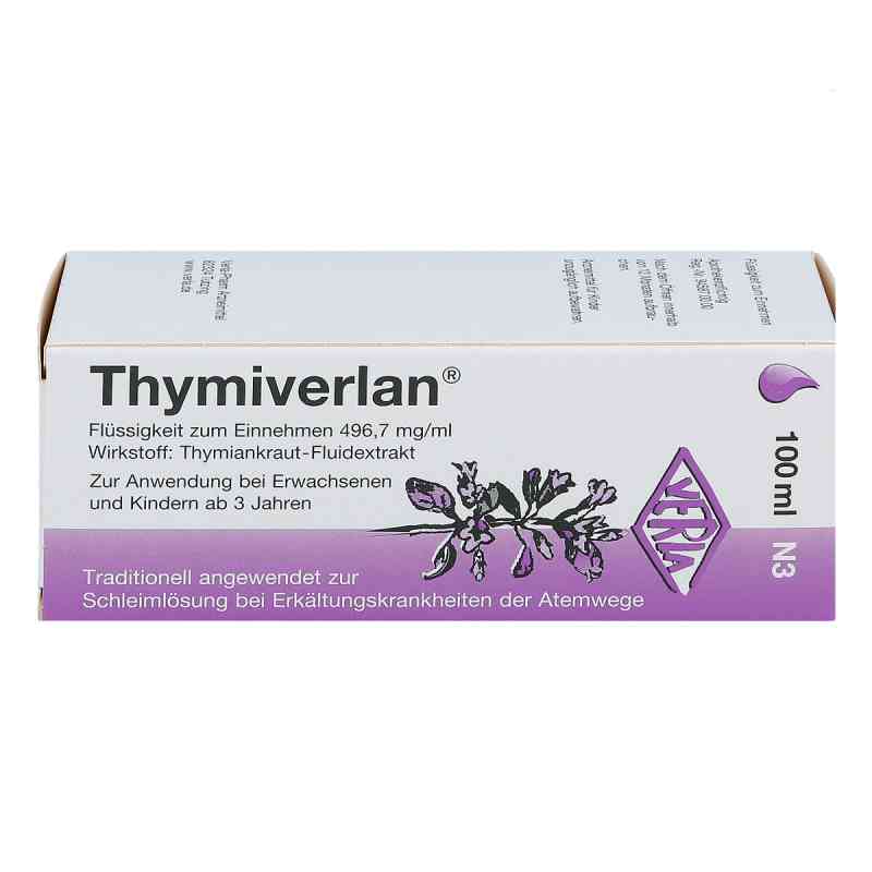 Thymiverlan Flüssigkeit zum Einnehmen (Packungsgröße: 100 ml) sind apothekenpflichtig und können in Ihrer Versandapotheke www.apodiscounter.de erworben werden.