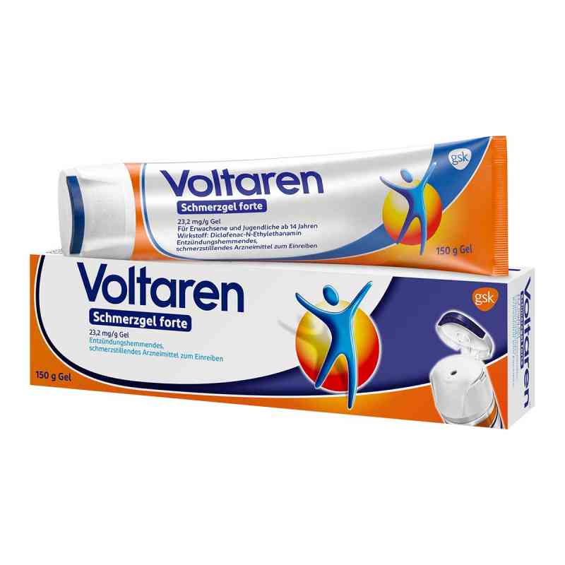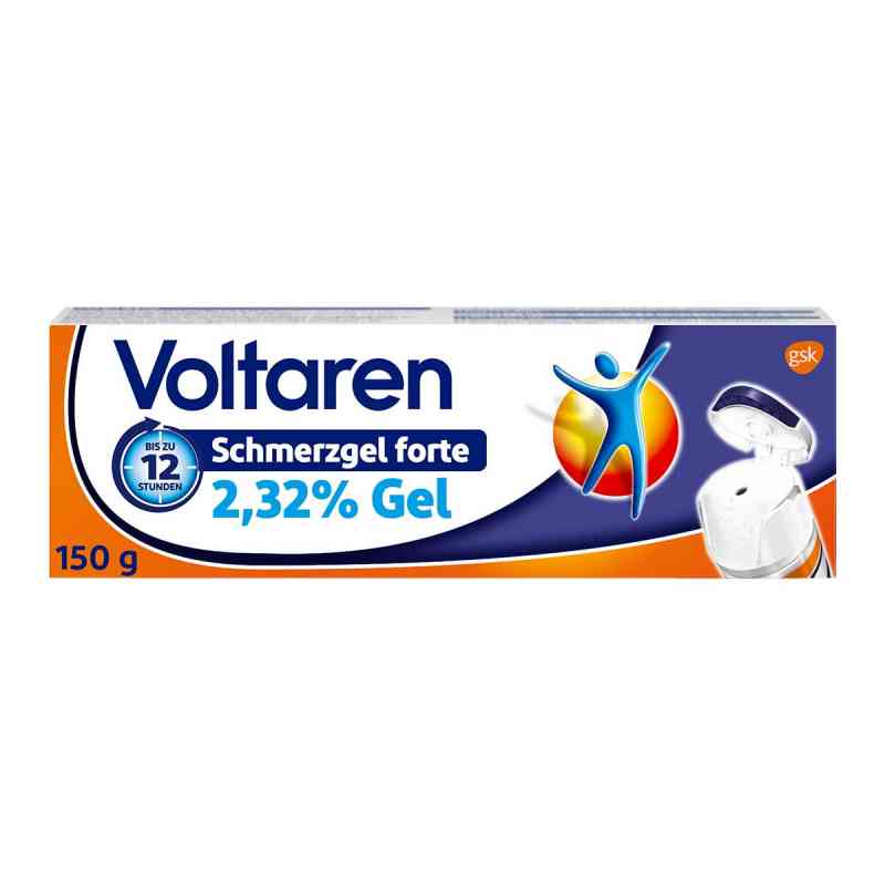 Voltaren Schmerzgel forte 23,2 mg/g Gel mit Diclofenac, 150 g - Schmerzlinderung bis zu 12 Stunden. Lindert Gelenkschmerzen* bis zu 12 Stunden lang – direkt an der betroffenen Stelle (* infolge eines stumpfen Traumas, z. B. Sport- und Unfallverletzungen). Voltaren Schmerzgel forte lindert Gelenkschmerzen* bis zu 12 Stunden lang – und zwar direkt an der betroffenen Stelle. Der Wirkstoff Diclofenac dringt tief in das Gelenk ein und konzentriert sich gezielt am Ort der Entzündung.