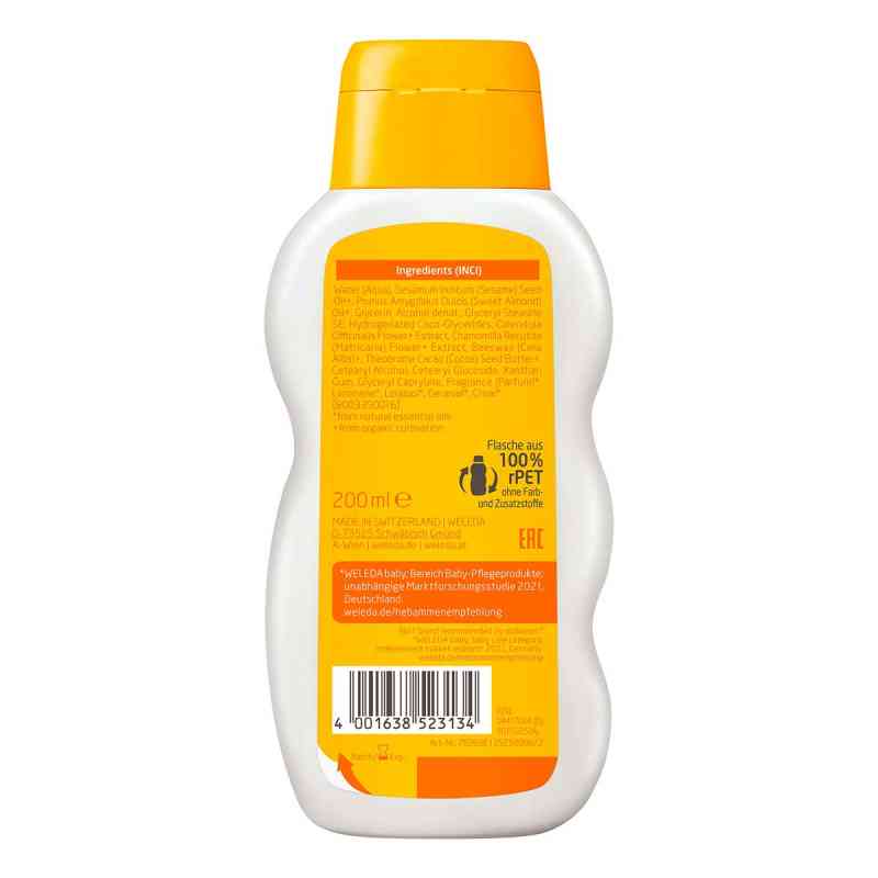 Mit Weleda Calendula Pflegemilch (Packungsgröße: 200 ml) verwöhnen Sie die hochsensible Haut Ihres Kindes bereits vom ersten Lebenstag an. Die Pflegemilch duftet angenehm zart und eignet sich ideal für die tägliche Körperpflege von Babys und Kleinkindern. Weleda Calendula Pflegemilch (Packungsgröße: 200 ml) enthält wertvolles Mandelöl aus kontrolliert biologischem Anbau. Dieses hält die Haut weich und geschmeidig und schützt sie vor dem Austrocknen. Der Pflanzenauszug aus Calendula beruhigt gereizte Haut. Weleda Calendula Pflegemilch (Packungsgröße: 200 ml) lässt sich leicht verteilen und zieht schnell ein, ohne einen Fettfilm auf der Haut zu hinterlassen oder die Poren zu verstopfen. Die besonders milde Rezeptur unterstützt die natürlichen Hautfunktionen. Mit Weleda Calendula Pflegemilch (Packungsgröße: 200 ml) pflegen Sie auch empfindliche Erwachsenenhaut.